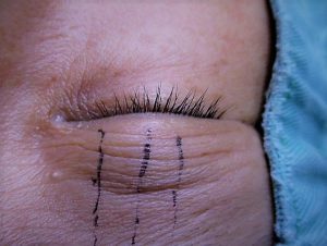 目を持ち上げる眼瞼挙筋を短縮していきます
